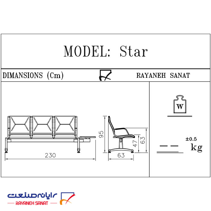 صندلی سالن انتظار سه نفره استار مدل W929p3 m